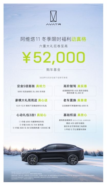 阿维塔11冬季限时福利火爆来袭 尊享6重豪礼+至高5.2万购车基金