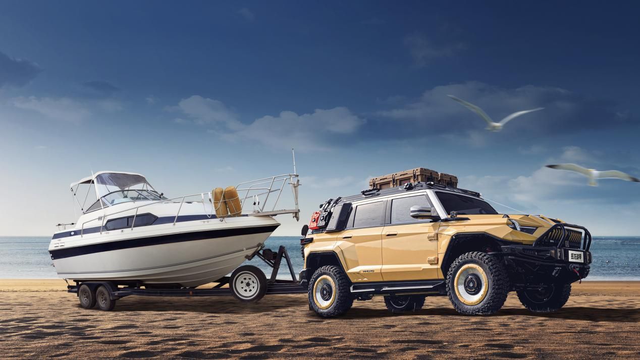 对于真正的越野爱好者来说,仅仅能“玩得野”还远远不够。蛟龙战甲的多功能后拖车钩集成房车取电口,还提供了高达2.5吨的最大牵引力。这意味着,你可以轻松地挂上房车,即刻拥有一座移动的豪宅,在越野的同时享受家的温馨;或者挂上摩托,变身骁勇的骑士,驰骋于天地之间;甚至还可以挂上游艇,驾船远航,逐波碧海间。
