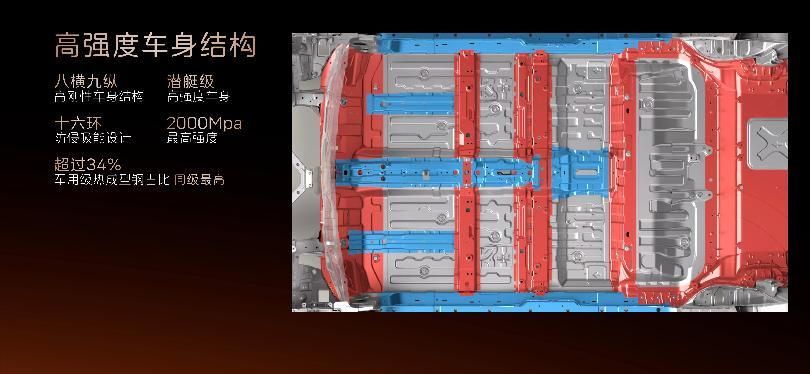 电池安全方面,电芯采用宁德时代AI 加强的第八代智能产线,累计通过150+项专项安全和性能试验,电池0起火0爆炸,达到了极高安全标准。此外,门槛梁采用全贯穿式六宫格铝型材和热成型钢三层外中内板组合设计,形成“三明治”式防护结构,外加热成型双拼座椅后横梁结构,组成三重防护结构,在遭遇冲击时高效保护电池。