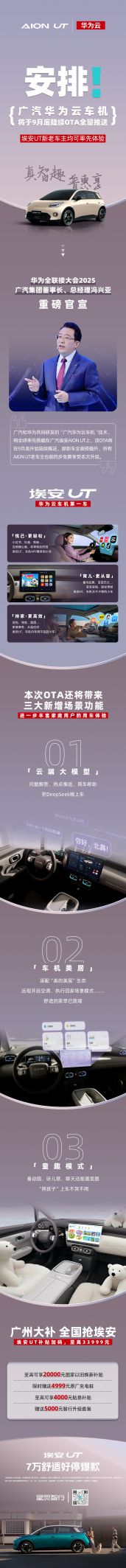 9月底全量OTA普惠新老车主!埃安UT全球首搭广汽华为云车机