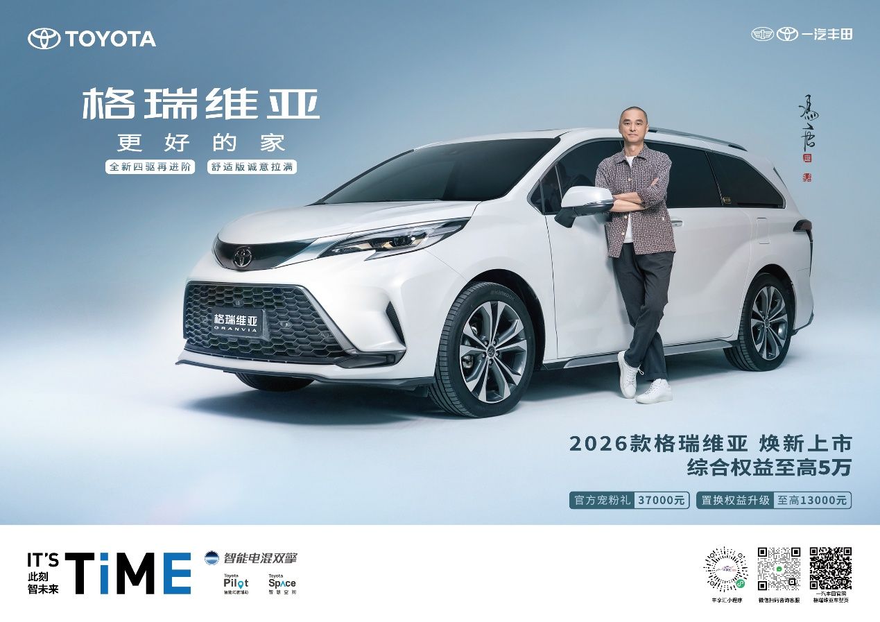 这个金秋,一汽丰田以诚意大礼和两款重磅车型的焕新上市,将先进科技与人文关怀融入到用户生活的每个细节,为用户提供了美好出行的新想象。诚如2026款格瑞维亚的口号,一汽丰田也正与用户,从我们的家到更好的家,一起创造美好,一起驶向更值得期待的新远方。