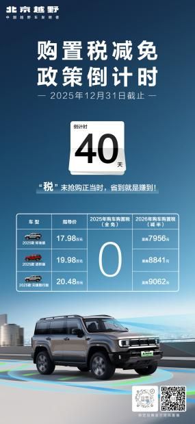 购置税免征倒计时!北京越野厂补加码,双重福利抢占购车黄金期