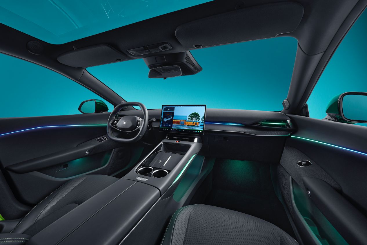 作为专为年轻人打造的轿跑车型,极狐全新阿尔法S5在颜值上可谓下足功夫。新车秉承“风塑美学”设计理念,车身尺寸达4886×1930×1480mm,轴距2900mm,低趴宽体姿态搭配百万豪车级大溜背,实现0.1925Cd超低风阻。色彩方面新增幻影绿、瓦纳蓝、熔岩灰三款配色,共7种潮流选择,其中幻影绿采用PPG高端PWB纳米炫彩水性色漆,液态金属流动质感吸睛度拉满。此外,无边框车门、艳色卡钳、3430cm²同级最大智能主动升降尾翼,再加上近400颗LED组成的日行灯和360°智驾小蓝灯,让新车化身回头率爆表的“蓝眼狐”,内饰新增的赤焰棕色搭配双幅式方向盘,更贴合年轻审美,四驱版还配备兰博基尼同款一键暴走红色翻盖按键,打造独有的超跑仪式感。