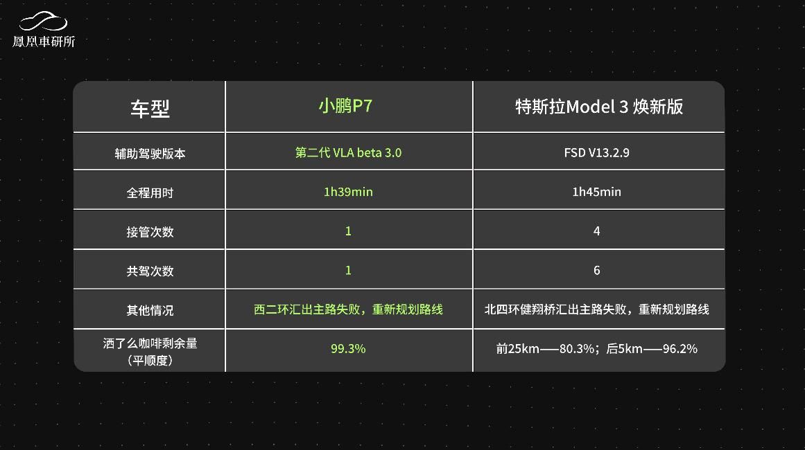 此次北京晚高峰的实测堪称“魔鬼路况”考验,测试路线涵盖快速路、窄道、胡同、人车混行等复杂场景,小鹏P7搭载第二代VLA全程用时1小时39分,仅人工介入2次;而特斯拉Model 3则用时1小时45分,介入次数达10次。不仅数据占优,实际体验中,小鹏第二代VLA更像熟悉本地路况的专车司机,行驶从容舒适,反观特斯拉FSD则让驾驶者全程高度紧张。即便与海外FSD V14的实测素材隔空对比,小鹏第二代VLA在保证通行效率的同时,也展现出更贴合日常驾驶的体验感。
