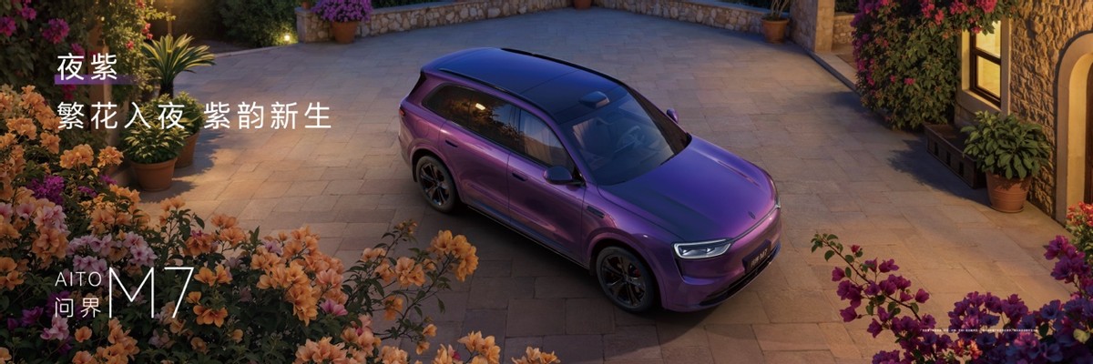 问界 M7新增“夜紫”车色,灵感源自5000光年外的银河星系,通过铝粉与红紫珠光漆的精妙配比,呈现出星空紫色的纯粹与饱和质感,神秘而深邃。此次焕新,问界 M7同步推出21英寸星芒轮毂选配。精密星芒造型呼应夜紫车色,显著提升车辆侧面豪华感与精致度,让每一次出场都气场十足。