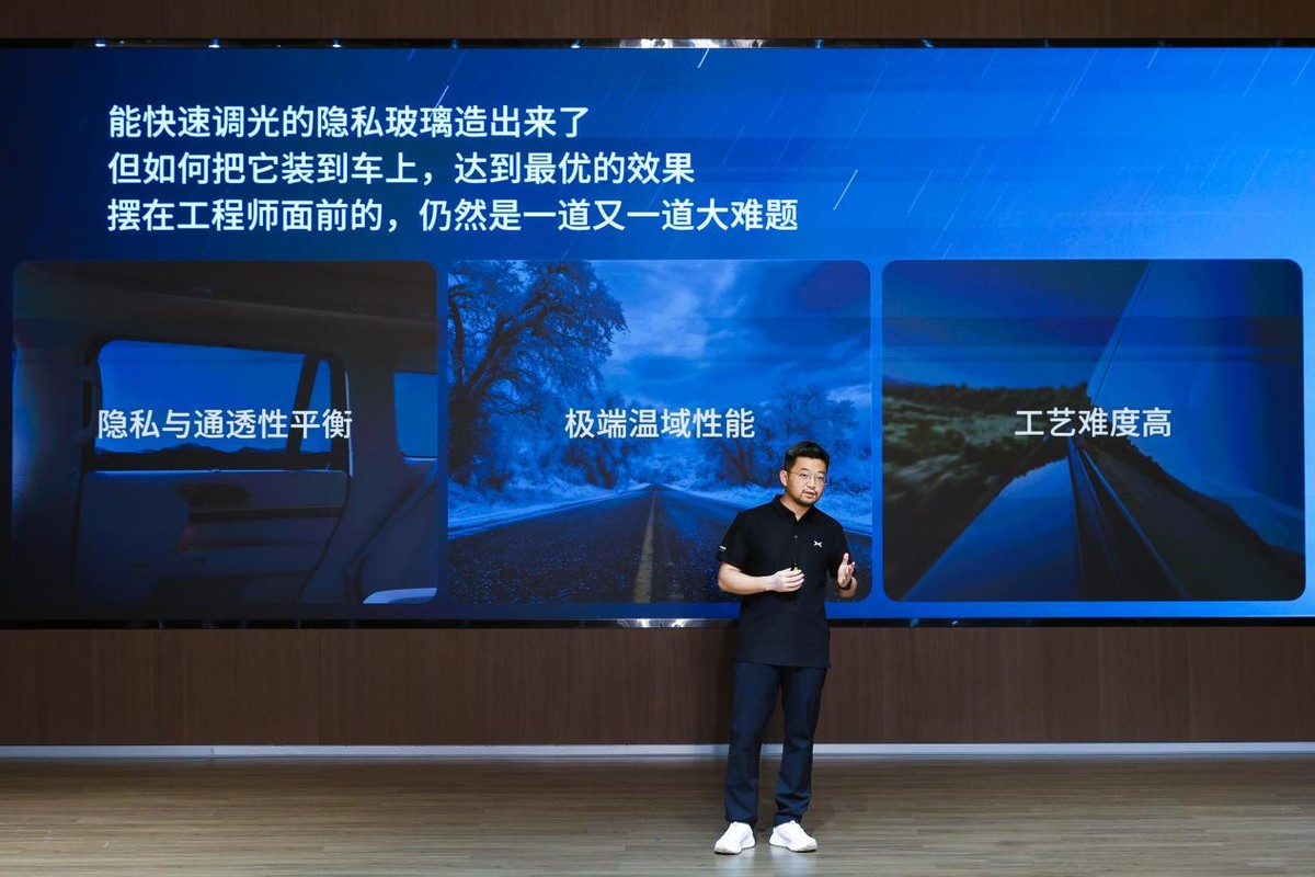 AI调光隐私玻璃的技术突破只是第一步,如何实现完美装车达到最优效果,仍需攻克“隐私与通透性平衡、极端温域性能、工艺难度高”三大难题。小鹏与福耀研发团队历经上百轮试验迭代,才终于得以将难题一一攻克。