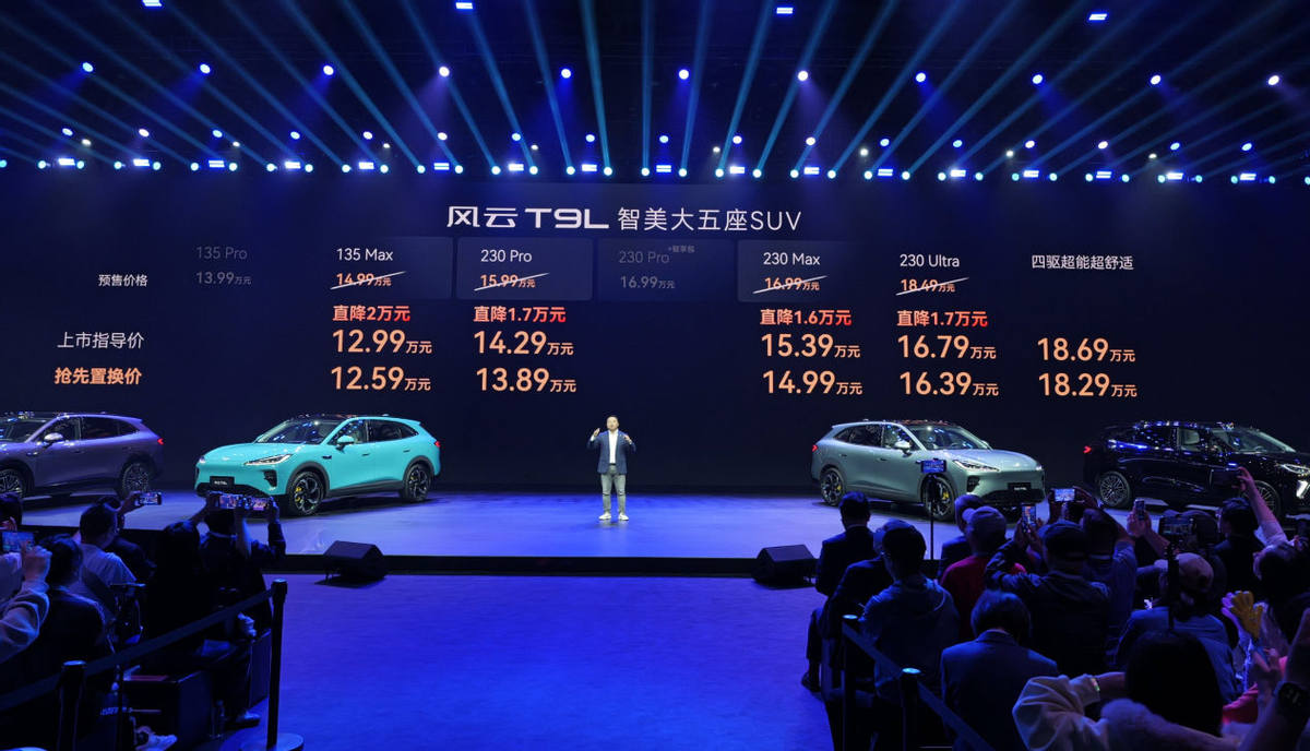 4月13日,家用“智”美大五座SUV——风云T9L正式上市,官方指导价12.99~18.69万元。
