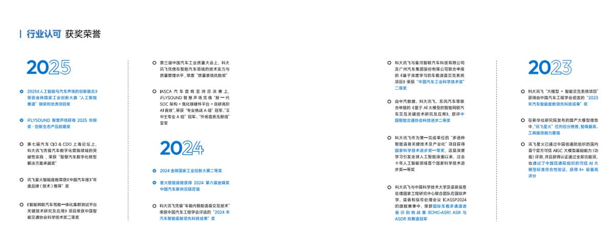 在汽车智能化进入深水区的当下,科大讯飞此次在北京车展的系列发布,不仅完成了自身从智能交互核心技术,到全场景智能座舱、智慧声场、辅助驾驶、车企数智化的全链条能力升级,更以全栈自主可控的 AI 技术底座,为中国汽车品牌的智能化升级与全球化出海提供了核心支撑。当汽车智能化从 “功能堆砌” 走向 “体验革新”,从 “被动响应” 走向 “主动服务”,科大讯飞正以持续的技术迭代,推动智能汽车行业真正进入 “懂人、会办事” 的主动式 AI 新纪元,同时也让中国自主的汽车智能化技术,在全球市场拥有了更强的话语权。