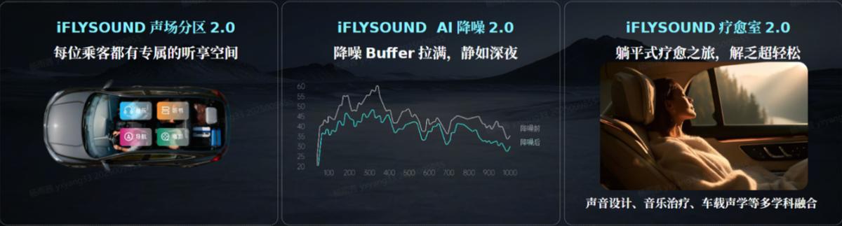 除了顶级的音质表现,iFLYSOUND 还实现了场景化能力的全面突破:在 “好用” 层面,带来了前后双音区 99.3% 隔绝率的声场分区、AI 降噪、声场智导等功能,其中声场智导技术可通过 3D 空间声定位,让导航、警示音具备方位感,用听觉提升驾驶安全性;在 “好玩” 层面,落地了无麦 K 歌的 Hi-Sing 嗨唱、露营空间、随行 DJ 等创新场景,让车载音频从 “播放工具” 升级为全场景的声音体验平台。截至目前,iFLYSOUND 智慧声场落地车型已超 120 万辆,本届北京车展发布的魏牌 V9X、东风日产 NX8、极氪 26 款 007GT 等多款新车,均搭载了该系统相关技术。