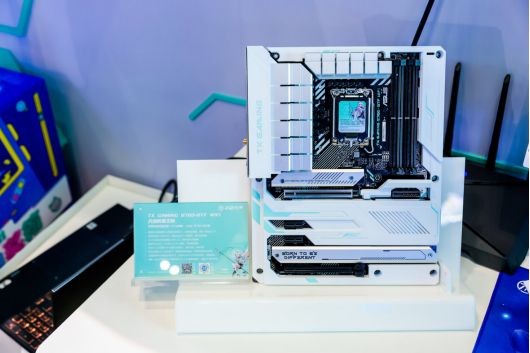 另特别展示了三款吹雪家族成员,分别是华硕B760小吹雪、B760吹雪、X670E吹雪主板。其中华硕B760小吹雪更是今年618京东开门红销量王,战力再竞化,至高可支持到DDR5 7800+(OC)。身披银白机能装甲,更将虚拟代言人雪武战姬形态剪影巧妙融入其中,二次元浓度直接拉满。是MATX板型也巧妙加入显卡易拆键,拆卸显卡一键搞定。