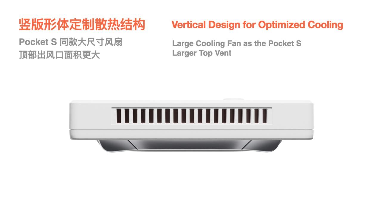 作为竖版掌机有史以来的性能天花板,Pocket DMG 通过更精巧的结构堆叠,在紧凑机身内配备 Pocket S 同款大尺寸散热风扇以及 48 片、总规模达到 13330mm² 的散热鳍片,机身顶部大面积出风口进一步提升整机的导热效率,带来与超轻薄旗舰 Pocket S 一致的 15W 满级性能,满帧畅玩更多类型游戏。