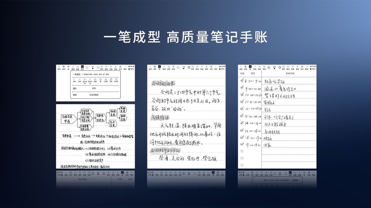 MOUNTAIN系列支持的全局手写批注全面支持第三方应用,随想随写,轻松完成手写记录,并可以创建目录进行管理。MOUNTAIN系列内置定制版Office可随心进行日常办公操作,高效精准处理文字、表格、演示文稿等内容,并提供业内唯一支持office公式手写识别技术,让M10秒变办公生产力工具。