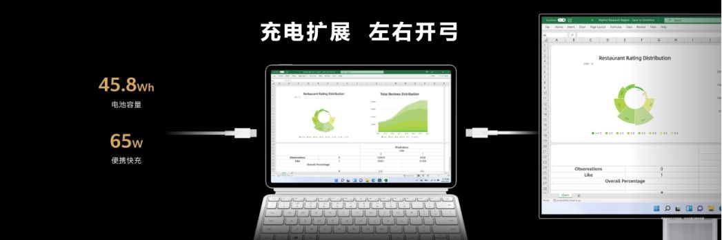续航方面,得益于整机功耗的降低,根据华为实验室测试数据,满电状态下华为MateBook E Go可以最高支持长达14小时的本地视频播放时长,缓解移动办公族的电量焦虑。