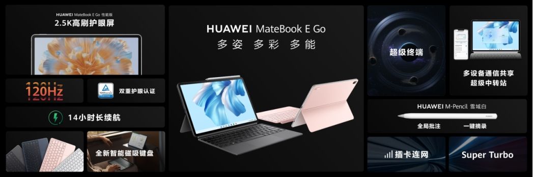 在发布会上,华为终端BG COO何刚表示:华为MateBook E Go,可拆可合,每一面都出彩,未来将是移动办公生产力的优选。“