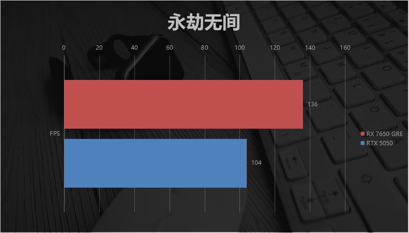 再来看网络游戏这边,《无畏契约》RX 7650 GRE领先了10.92%,《永劫无间》则领先了30.77%。从结果来看,打游戏的话只能选择RX 7650 GRE,RTX 5050确实比不了。