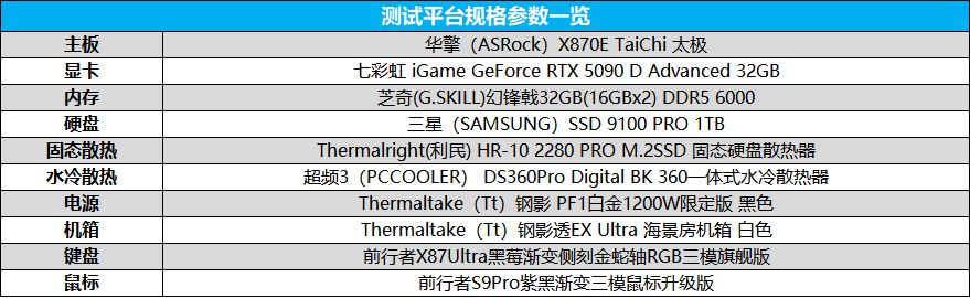 为了充分释放锐龙7 9850X3D的游戏潜力,我们搭建了无性能瓶颈的旗舰测试平台,确保处理器性能不受其他部件限制。