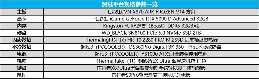 为了充分释放锐龙7 9850X3D的游戏潜力,我们搭建了无性能瓶颈的旗舰测试平台,确保处理器性能不受其他部件限制。