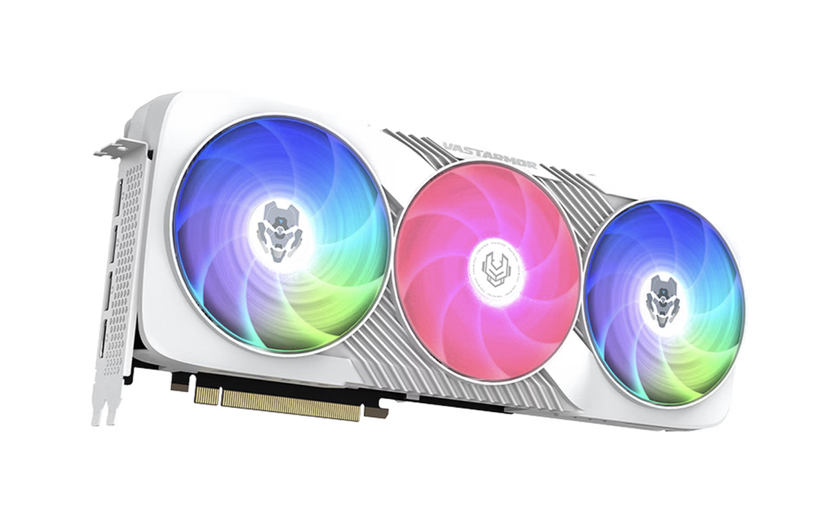 国补后只要4900元左右的这款显卡,性价比真的拉满了。它有黑白两款配色,不管搭什么装机风格都合适,半透明扇叶自带RGB灯效,发光面积比普通卡身灯效更大,点亮后颜值很吸睛。