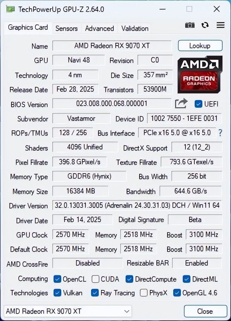 核心架构与硬件规格:RDNA4全面升级,非公版用料拉满
