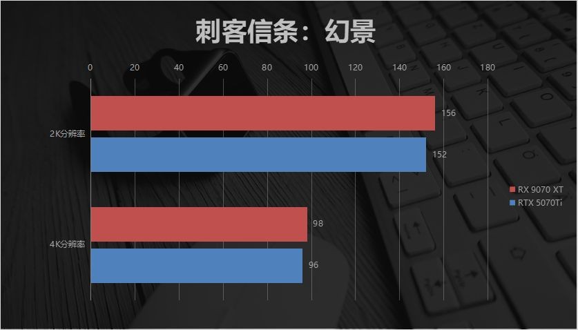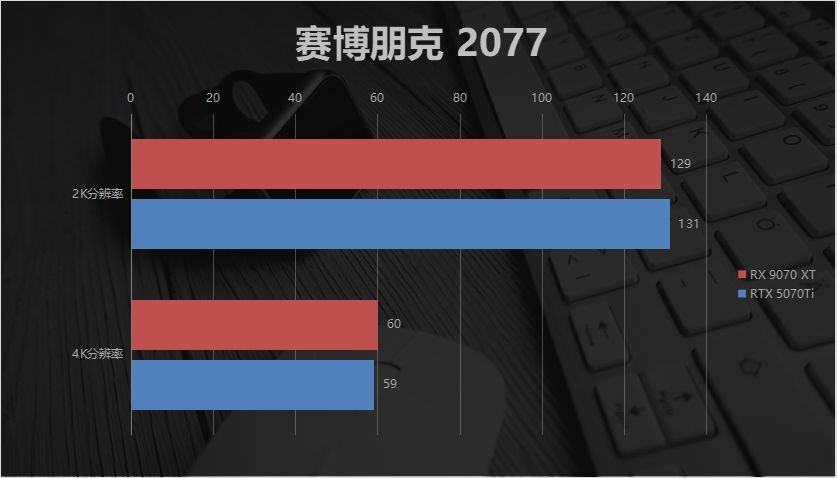 旗鼓相当的基准表现:在《星空》《赛博朋克2077》《龙腾世纪:影障守护者》三款游戏中,瀚铠RX 9070 XT与RTX 5070Ti的表现几乎完全一致,2K与4K分辨率下的帧率差距均在2%以内,肉眼完全无法感知差异,两款显卡都能实现高画质下的流畅运行。
