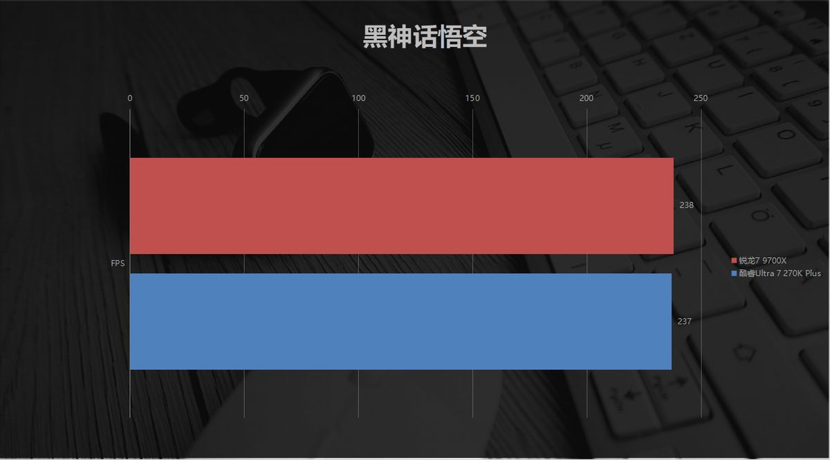 具体来看,《黑神话:悟空》这边,锐龙7 9700X以微弱的优势领先,基本可以看做两者打平,黑猴面前众生平等的魔咒仍在继续。