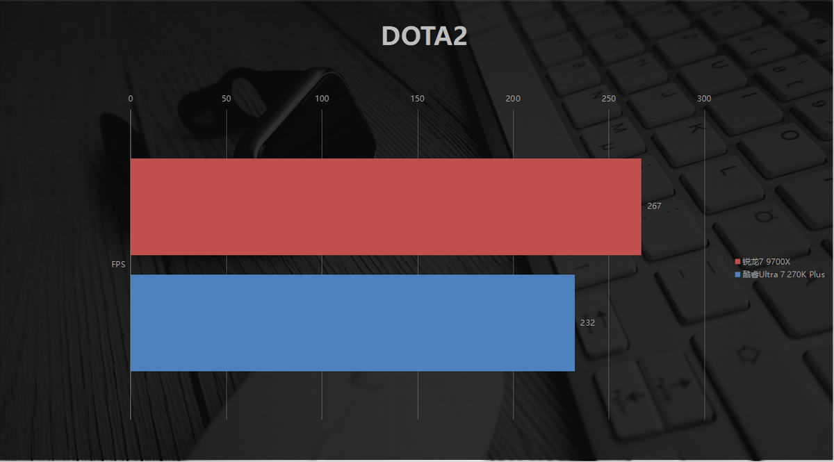 《DOTA2》这里,锐龙7 9700X继续扩大优势,双方差距拉开到了15.09%。