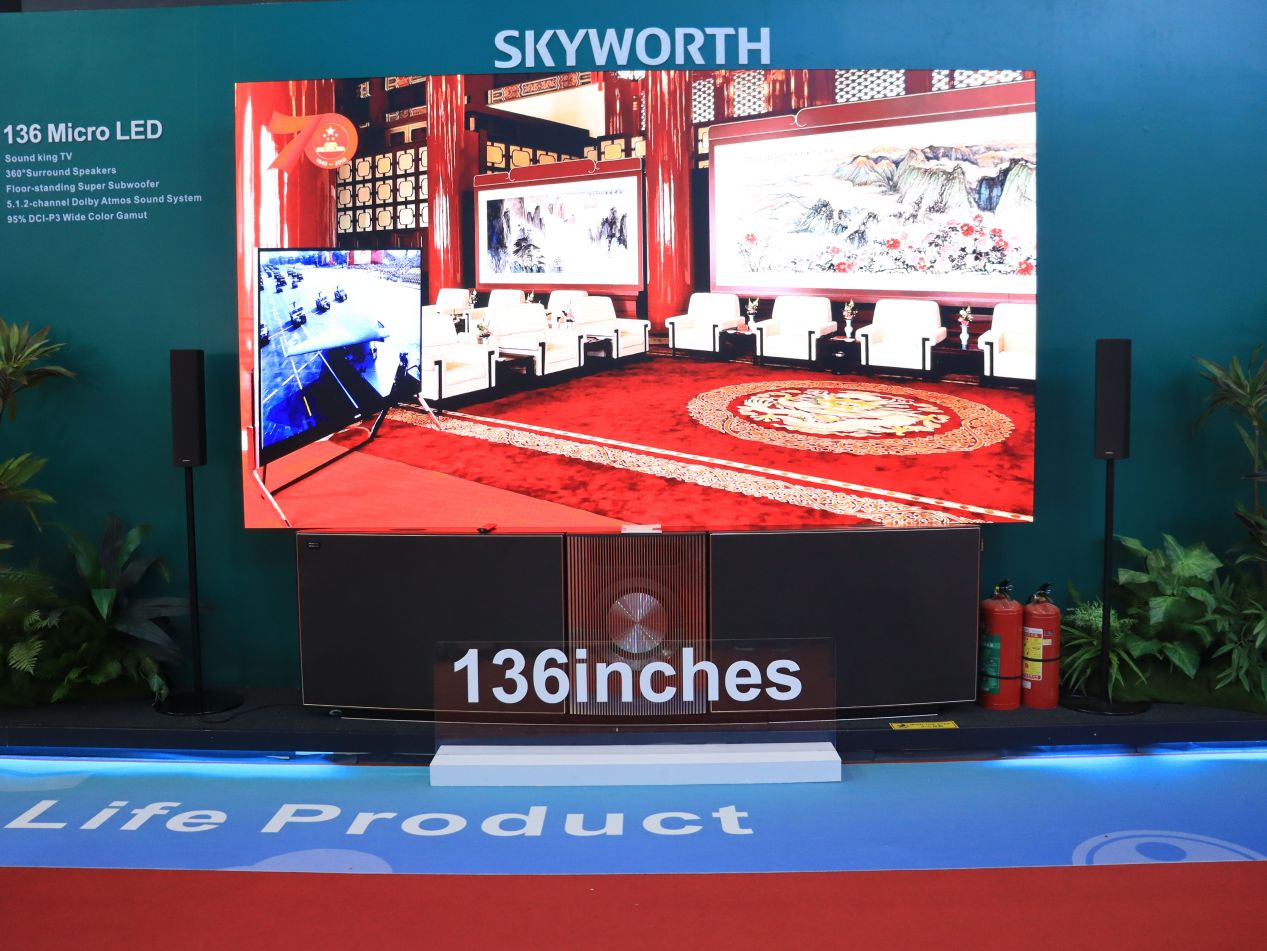 面向商用领域,创维首台AI智能体多场景LED超级电视——“创维影音王座”136吋Micro LED也重磅亮相,能够覆盖会议、教育、文旅等多元场景。