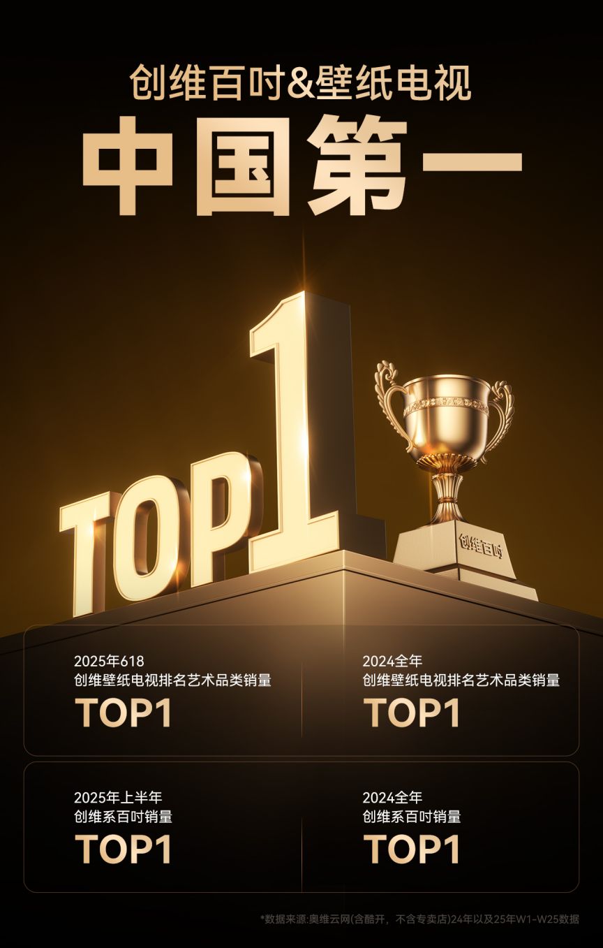 根据权威机构奥维云网(AVC)的数据,创维电视继2024年全年百吋电视销量夺冠后,在2025年上半年继续稳居中国市场销量第一,并在“618”期间斩获艺术电视品类销量冠军。而不仅如此,随着今年“九三阅兵”落下帷幕,创维电视已两度荣登天安门城楼,成为“阅兵电视”指定品牌,代表了中国显示技术的巅峰水平,这是对其“国典品质”的最高肯定。这一系列成就,有力地证明了中国品牌在高端市场的“技术突围”已是硕果累累。