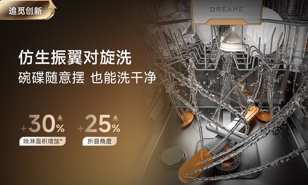 创新专利仿生振翼喷淋臂,告别“摆碗焦虑”,清洁更省心