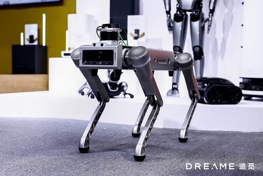 追觅科技展台上,还有一只非常硬核的工业级四足机器人在巡场。据介绍,追觅科技这款工业级四足机器人可以载人载物、攀爬越障,具备很好的动态避障能力,可广泛用于安防、巡检、救援、勘察、测绘等场景,服务消防、电力、矿业等行业。