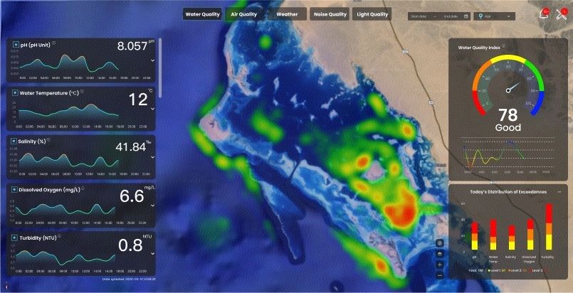 与过去依赖人工潜水、船只巡逻等传统监测预警方式相比,AI Eco360平台构建了完整的AI环境智能监测与管理闭环,通过集成各类设备及多模态数据、可视化管理、AI预测与分析、预警与辅助决策等,填补科学管理的关键数据缺口,实现了从数据感知到精准行动的闭环管理,大力提升监测预警能力,为生态资源科学管理增质提效,助力红海地区应对潜在的生态威胁,实现生态系统绿色、可持续发展。
