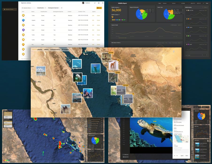 在亚非交界的蔚蓝海域,有一片令人屏息的奇迹——红海。这里有众多未受破坏的岛屿、多样的地貌和上千种鱼类,是全球最独特的珊瑚礁生态系统之一。为响应沙特2030年愿景,商汤沙特SenseTime MEA在此打造全球首个AI赋能的一站式可持续生态智能平台——“AI Eco-360生态全景分析平台”(AI Eco-360 Analytics Platform,以下简称“AI Eco-360平台”),全面整合天空、陆地和水下环境生态系统中50余种环境与生态指标的实时数据,为沙特红海地区提供360度全景监测与智能分析管理,为决策者提供可实践、可持续的发展建议,全方位支持生态保护与资源管理,助力沙特阿拉伯的绿色可持续、高水平发展。