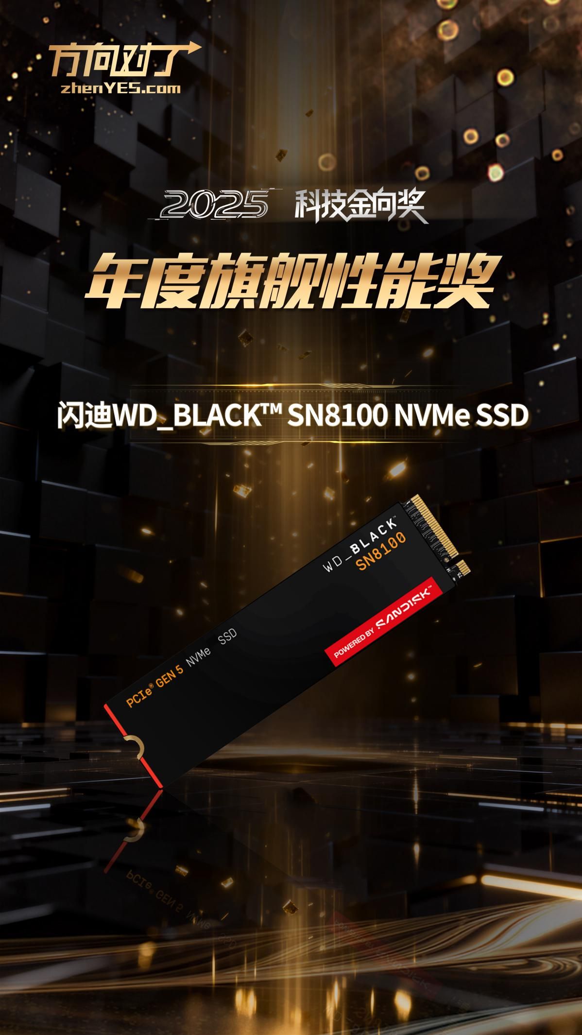 闪迪WD_BLACK™ SN8100 NVMe SSD斩获2025科技金向奖年度旗舰性能奖