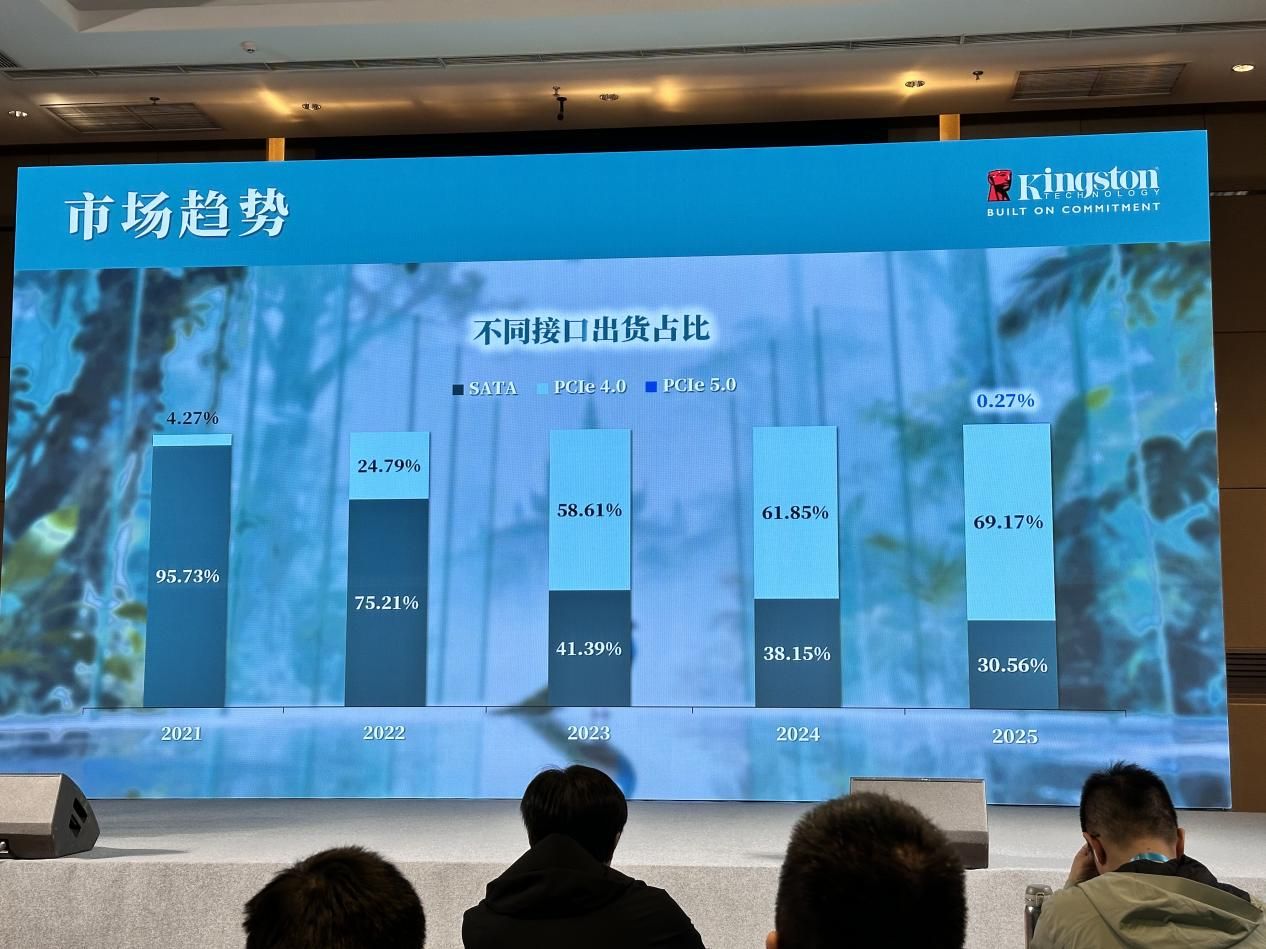 数据显示,DDR5内存的市场份额近年增长迅猛,2024年与DDR4持平后,2025年双11期间出货量已显著反超;固态硬盘市场则从SATA接口快速转向PCIe 4.0与5.0,目前PCIe 4.0产品出货占比已接近70%。