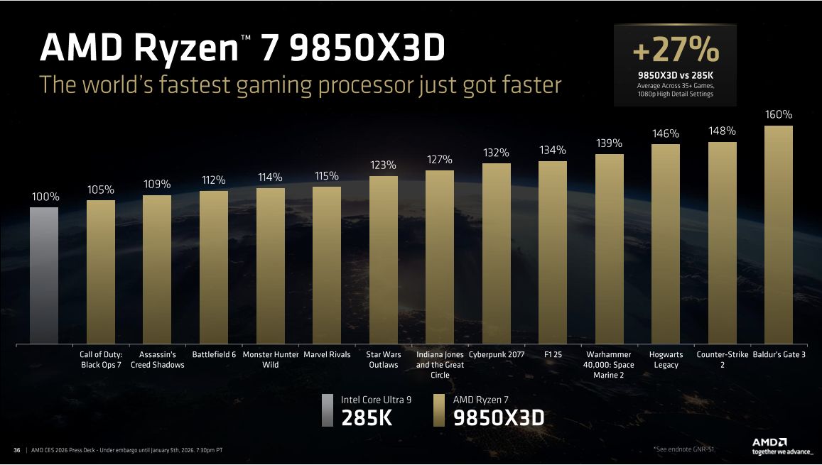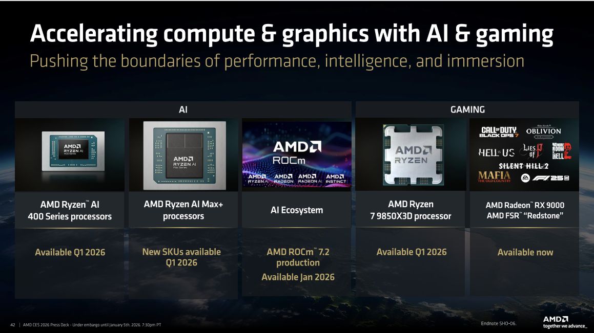 CES 2026 AMD三箭齐发:不只锐龙 AI 400/Max+,9850X3D也来了!