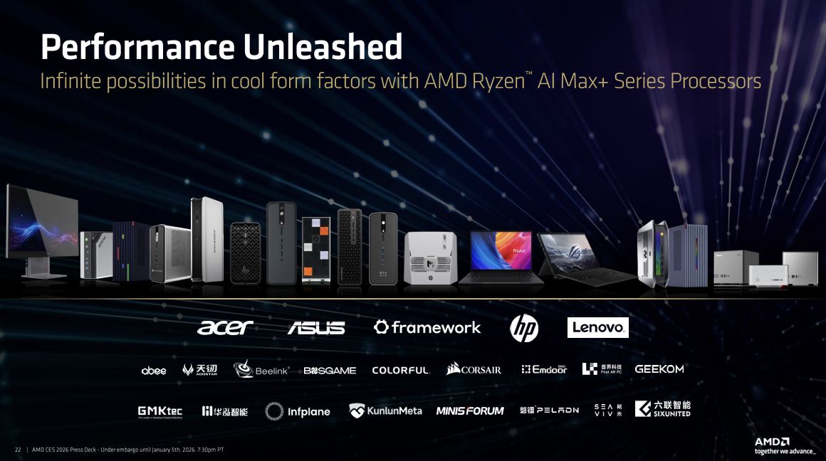 值得注意的是,锐龙AI Max+系列正在拓展产品形态边界。除传统高端笔记本外,framework、Beelink等厂商将推出搭载该处理器的Mini PC、一体机与二合一设备,例如支持96GB专用显存分配的Mini工作站,进一步降低专业级AI应用的硬件门槛。
