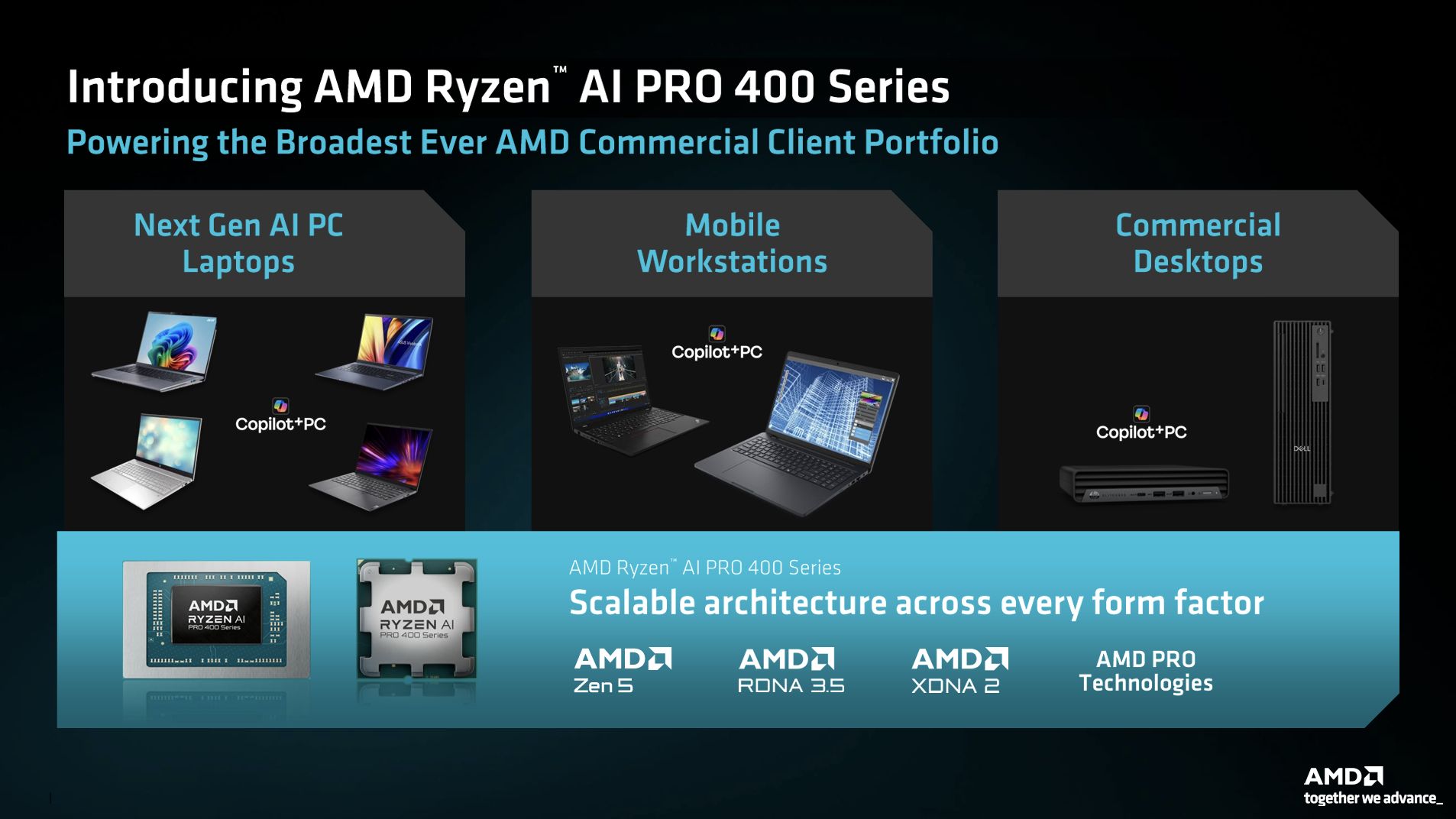 2026世界移动通信大会(MWC)上,AMD正式对外发布锐龙AI 400系列及锐龙AI PRO 400系列台式机处理器,同时完成锐龙AI 400系列移动产品线向移动工作站领域的扩展,一举完善了面向消费者与企业级市场的AI PC产品矩阵,为Windows 11 AI+ PC体验提供了全形态、高算力的硬件支撑,也让AI PC的端侧落地进入更实用的全场景阶段。