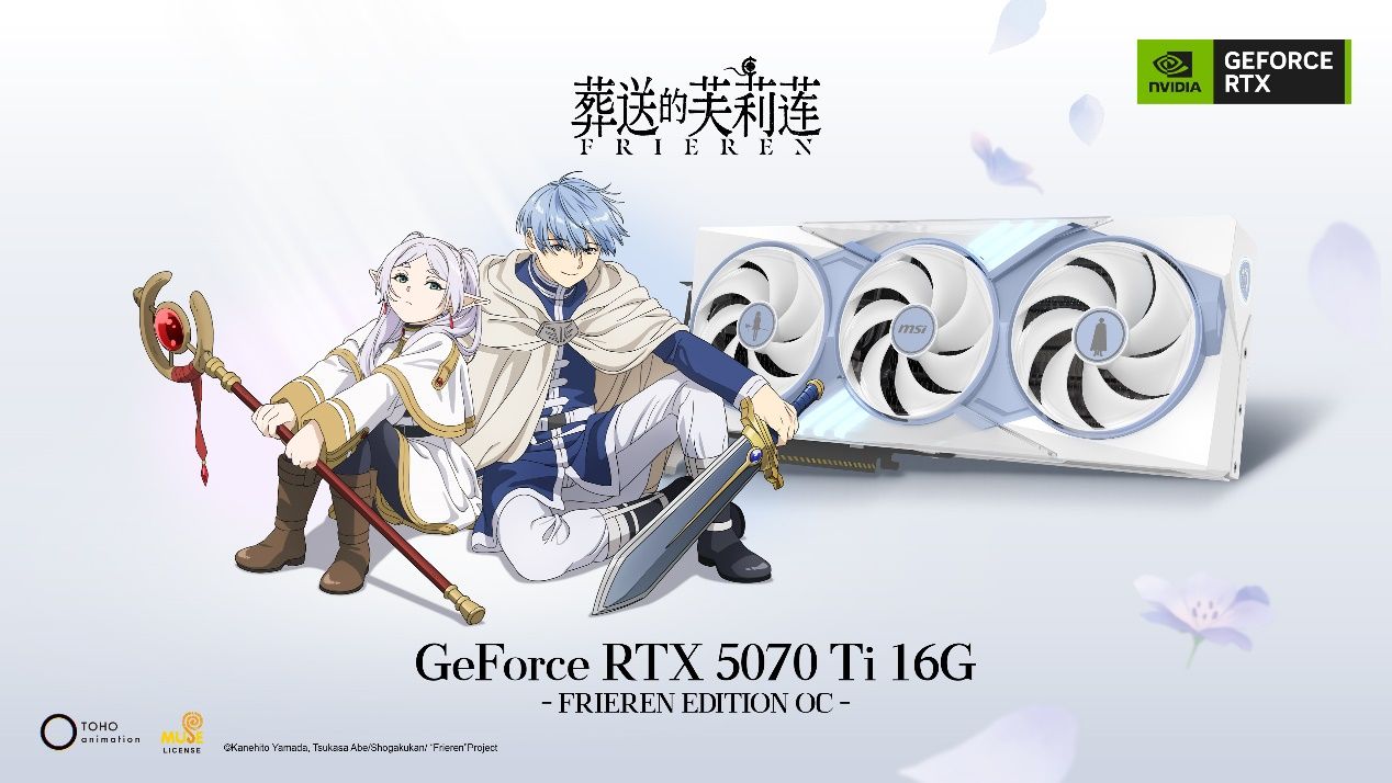 MSI微星科技荣幸宣布与《葬送的芙莉莲》展开全新跨界合作,推出一系列独家限定版产品。设计灵感源自这部动漫所传递的陪伴、回忆与漫漫旅途的核心主题,产品包含 GeForce RTX™ 5070 Ti 16G OC 芙莉莲限定版显卡、FORGE TKL 芙莉莲限定版无线机械键盘、 VERSA 芙莉莲限定版无线鼠标以及AGILITY 芙莉莲限定版鼠标垫。