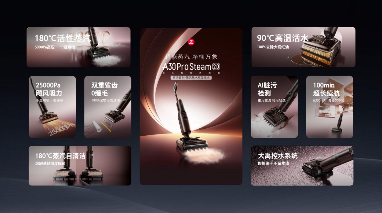 在洗地机领域,A30 Pro Steam 2.0系列凭借高温蒸汽与热水双效洗地技术,持续夯实其在深度洁净与健康除菌方面的领导地位。市场数据也印证了其产品实力,奥维云网(AVC)报告显示,石头洗地机在2025年一举夺得“蒸汽洗地机”与“A30系列洗地机”市场规模全国双冠军。更具行业意义的是,石头科技与人民日报健康客户端联合发布《2026家庭地面清洁标准白皮书》,将自身技术实践转化为公共知识,引导行业关注科学、健康的用户价值,充分彰显了头部企业的责任与担当。