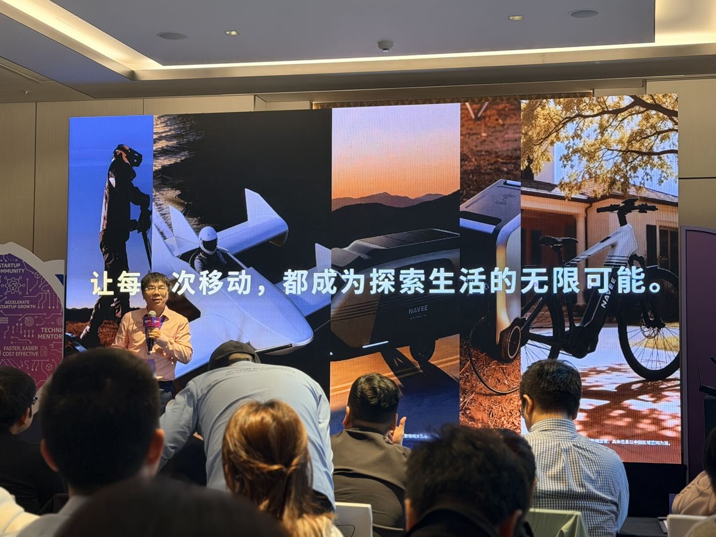 在演讲中,张鹰介绍,NAVEE是一家全球化的户外移动智能出行生态品牌。公司最初以电动滑板车业务起家,目前产品已拓展至水上飞行器、智慧房车、电助力自行车、智能电动行李箱、移动储能等六大品类,持续围绕智能户外移动场景,为用户提供创新的出行解决方案。