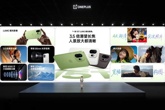 出色的影像硬件之外,一加 15T 还搭载 LUMO 凝光影像系统。在「超光感计算光学系统」与「超感知数字成像引擎」的深度调校下,一加 15T 拥有色彩真实、影调丰富的旗舰级画质。凭借「人像质感引擎」的算法优化,一加 15T 能有效解决复杂光源下的油腻感与画面失真,还原自然健康的肤色。搭配行业领先的「全链路 ProXDR」,一加 15T 从摄影到分享,每一张照片都能还原生动的亮部细节与真实色彩。此外,一加 15T 还在动态捕捉与实况照片功能上实现突破,带来全新升级的「无影抓拍」功能,大幅提升抓拍能力,还支持「4K 超清实况照片」、「大师模式」、「宽幅构图」等丰富影像功能,让一加 15T 随手拍下的每个瞬间,都更具动感与故事张力,拍人拍景清晰好看。