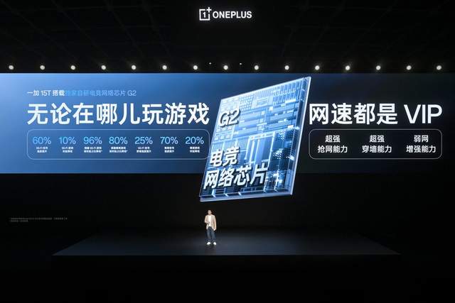 极致的游戏体验不仅需要强悍的性能,更需要稳定可靠的网络连接。一加 15T 搭载的电竞网络芯片 G2 能根据握持姿势和信号来源,智能调度多达 12 根天线,实现行业顶尖的抗干扰与降时延能力。在该芯片的加持下,一加 15T 能降低 96% 拥塞 Wi-Fi 高时延占比与 80% 拥塞蜂窝高时延占比,在校园宿舍、快餐店、地铁站等复杂网络环境下都能畅快联网。在公共 Wi-Fi 环境中,一加 15T 的抢网能力更是“降维打击”,300M 的更新包仅需 27 秒即可完成下载,速度远超行业大屏性能旗舰。