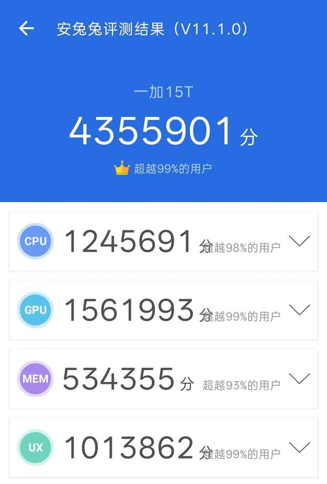 作为一加的数字旗舰,16+1TB版本的一加15T在性能上毫无保留,堪称小屏手机的性能天花板。核心搭载第五代骁龙8至尊版移动平台,配合最高16GB LPDDR5X Ultra Pro+1TB UFS 4.1的顶级存储组合,实测安兔兔跑分直接突破435万分,不仅刷新了小屏手机的跑分纪录,性能释放甚至比肩一众大屏性能旗舰。台积电第三代3nm工艺让这款芯片的能效比大幅提升,CPU单核性能提升20%的同时功耗降低35%,GPU性能提升23%、功耗降低20%,兼顾性能与续航的表现尤为亮眼。