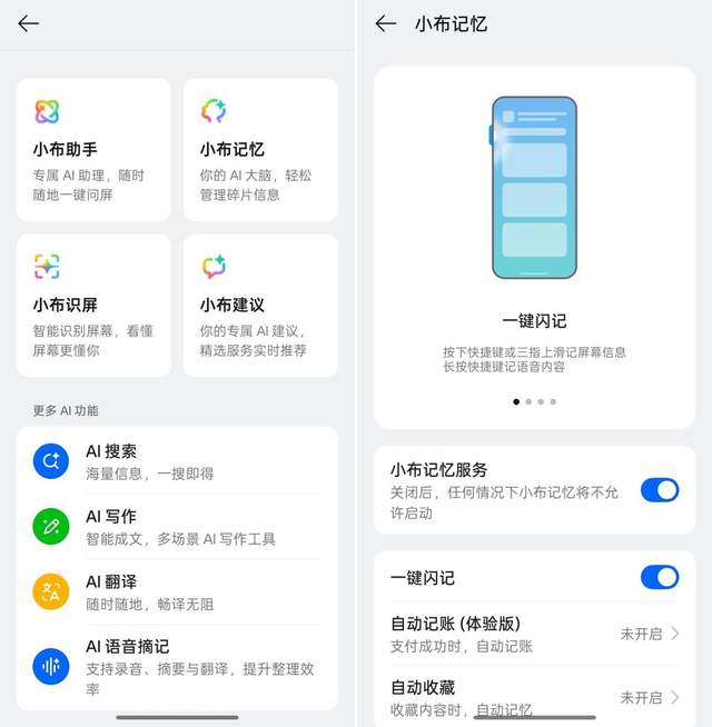 AI功能的加入,让办公学习效率大幅提升。全场景AI扫描工具能一键消除文档反光、阴影,精准提取手写笔记和表格,还能保留原格式跨端复制粘贴到平板、电脑,从扫描到提取再到分享,全流程高效便捷;「一键闪记」能快速保存取餐码、账单,「小布实景对话」随问随答,对于学生党和上班族来说,这些功能都是「刚需」。