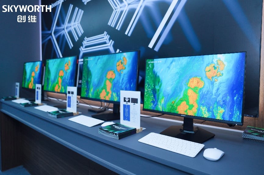 轻量级 AI 眼镜支持实时翻译,高效助力跨境沟通;超轻薄MR一体机便携易用,打开空间计算应用新入口。显示器覆盖电竞、办公、专业设计全场景,凭借高刷新率、精准色彩还原与人性化设计,满足不同需求,满足全球用户多元需求。一体电脑以紧凑机身与潮流配色,重塑桌面办公美学,令人耳目一新。智能安防设备采用太阳能供电与 AI 智能识别,稳定适配户外监控场景,以全场景智能终端能力,进一步夯实创维全球化智慧生态布局。