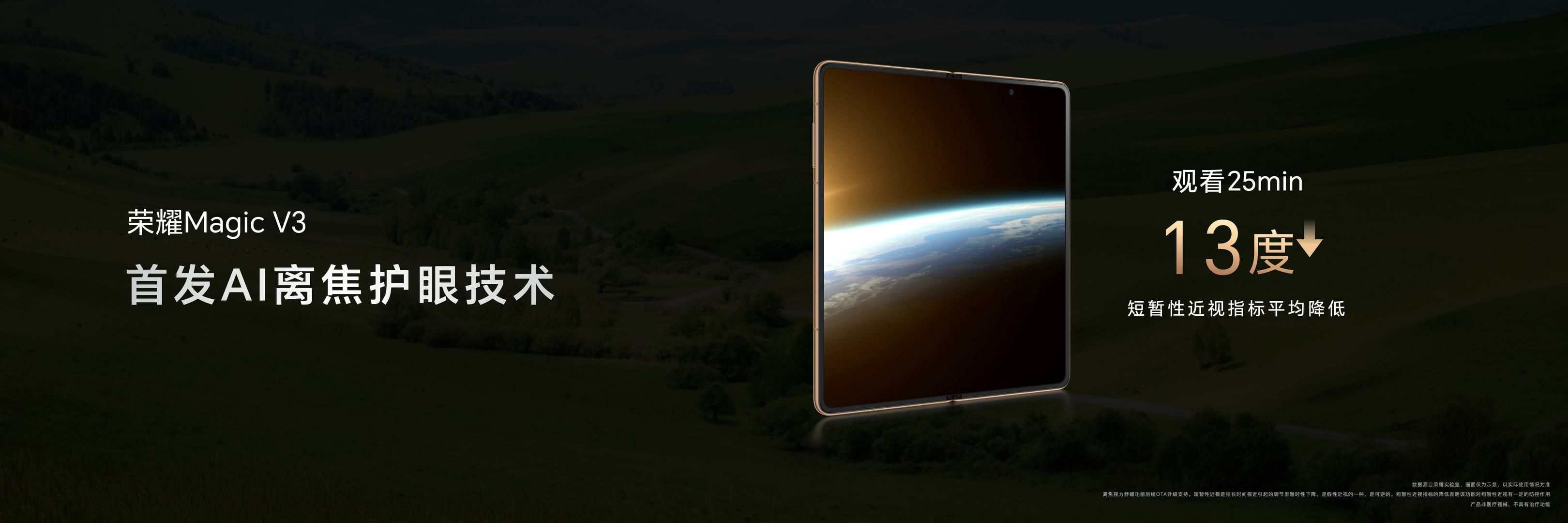 荣耀始终坚持双轮驱动的产品主义,凭借在折叠屏领域近百亿的研发投入与技术深耕,为折叠屏手机带来了轻薄、可靠、高效的全新体验,满足了用户对极致科技的追求。荣耀Magic V3和荣耀Magic Vs3的推出,再次在折叠屏手机领域实现诸多技术突破和功能革新,不仅通过全新荣耀鲁班架构实现极致轻薄设计,更带来第三代青海湖电池、航天特种纤维材质、荣耀视力舒缓绿洲护眼屏、双卫星通信、2.5米防水等创新体验,充分诠释了荣耀用科技魔法为消费者创造极致体验的价值主张。