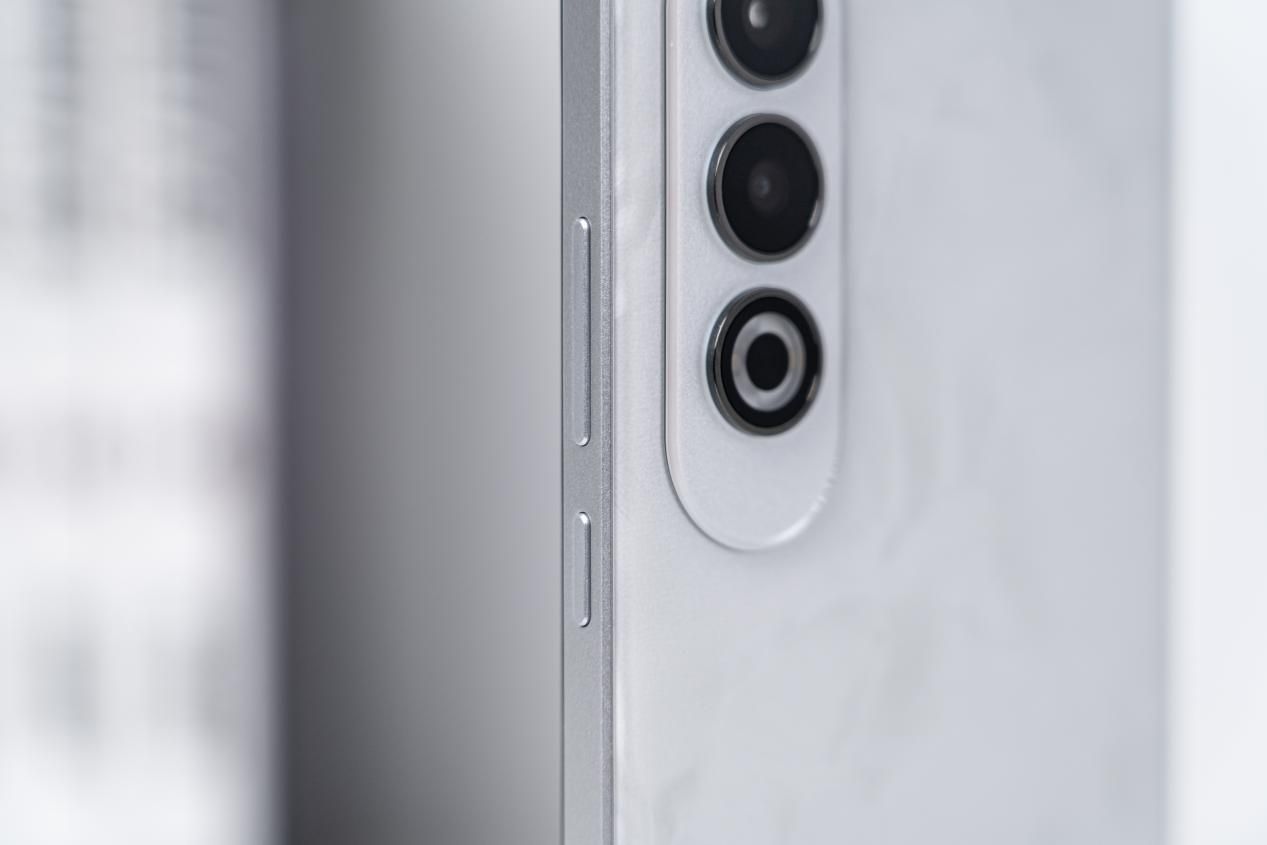 摄像模组是比较简洁的竖向居左排列,由于过渡圆润,不小心摸到也不会感觉硌手。镜头凸起幅度并不大,不会像有些机型那样放在桌子上就形成“跷跷板”。