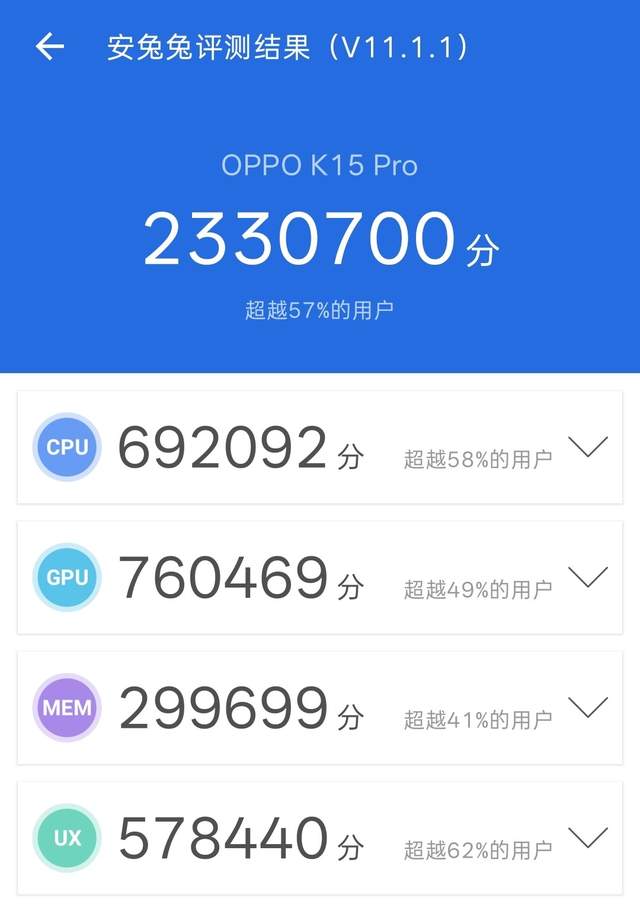 天玑8500 SUPER芯片搭配OPPO潮汐引擎的芯片级调校,深入底层优化了无效功耗,实测日常刷短视频、聊微信、多开办公APP完全流畅,切换应用没有丝毫卡顿,安兔兔跑分也直接突破233万分,应对中端机的性能需求绰绰有余。