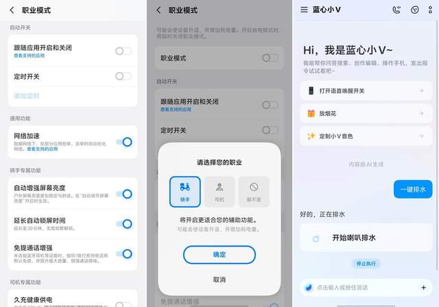 针对骑手、网约车司机这些户外高频使用人群,Z11 还做了专属职业模式,实用性拉满。网络会自动优化,抢单、派单不会卡顿延迟;强光下会自动激发 2000nits 高亮,订单和导航一目了然;默认开启免提,音量更大、降噪更强,嘈杂环境里通话也能听得清;还会在充电到 80%后直供供电,延长电池寿命,车载充电也更安心。