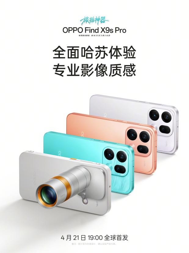 作为新一代旅拍神器,OPPO Find X9s Pro 从色彩还原到光影质感,从近景记录到远摄定格,全方位提升了移动影像的氛围感;同时机身轻巧便携、设计精致百搭,让用户轻装上阵,随心定格旅途美好。Find X9s Pro 将于 4 月 21 日正式发布,更多产品亮点与信息,敬请持续关注 OPPO 官方。